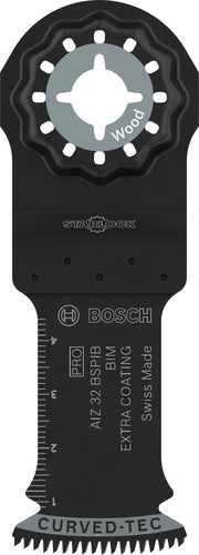 La hoja PRO AIZ 32 BSPIB, ideal para profesionales, combina una gran capacidad de corte por inmersión con una robustez que garantiza su compatibilidad con madera dura y compuestos de madera.