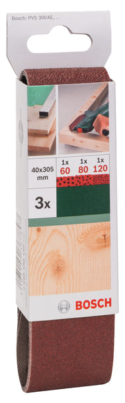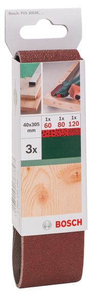 Bosch Juego de 3 bandas de lija para lijadora vario Bosch, calidad roja G= 60 - 120