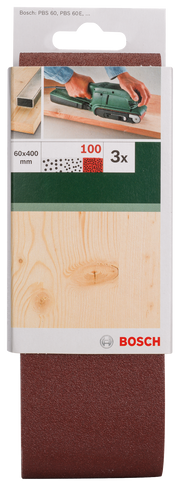 Bosch Juego de 3 bandas de lija para lijadora de banda, calidad roja G= 100