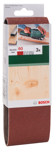Bosch Juego de 3 bandas de lija para lijadora de banda, calidad roja G= 60