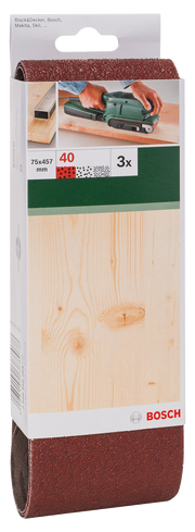 Bosch Juego de 3 bandas de lija para lijadora de banda, calidad roja G= 40