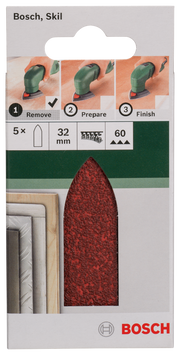 Bosch Juego de 5 hojas de lija para lijadora Delta, adaptador G= 60