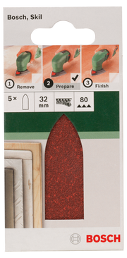 Bosch Juego de 5 hojas de lija para lijadora Delta, adaptador G= 80