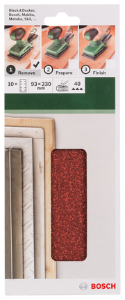Bosch Juego de 10 hojas de lija para lijadora orbital G= 40