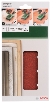 Bosch Juego de 10 hojas de lija para lijadora orbital G= 60