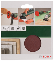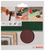 Bosch Juego de 5 hojas de lija para taladros D= 125 mm; G= 120, 5 unidades.