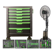 Carro portaherramientas de 7 cajones JBM (SERIE 574) 54389 - Verde + Ventilador nebulizador de agua 54125 de 75 W