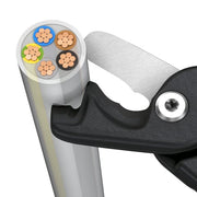 • Doble zona de corte: El borde de corte escalonado sujeta los cables pequeños y grandes cerca de la junta durante el corte; el borde de corte frontal corta los cables muy grandes paso a paso.