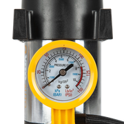 - O mini compressor portátil, com uma tensão de alimentação de 230V AC 50Hz, tem uma pressão máxima de 10,3 bar / 150 psi.