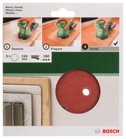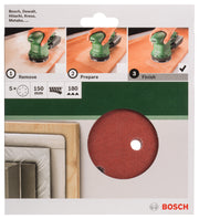 Conjunto de 5 folhas de lixa Bosch para lixadora orbital aleatória G= 180