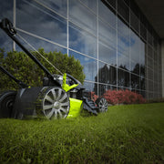 • Cortador de grama com tração, motor de 6,5 hp e 4 tempos.