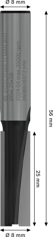 Fresa direita Bosch para fresa PRO, duas ranhuras, Ø 8 x L 25, haste de 8 mm