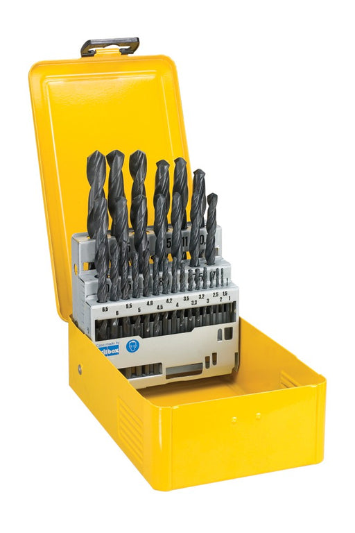 Descrição: Caixa grande e resistente com 29 peças para aço rápido HSS-G DIN 338 Ø 1 - 13 mm Broca retificada com precisão para uma perfuração...
