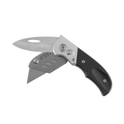 • Canivete dobrável para alcatifa e uso geral, com corpo em alumínio, lâmina fixa com mecanismo de bloqueio.