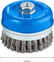 Escova tipo copo Bosch M14 100 mm, com nós de 0,5 mm em aço