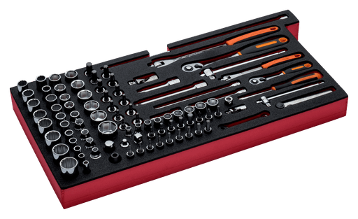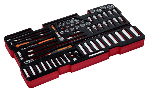 Visão geral do produto: Inclui 51 peças; Chave de roquete reversível SBS81 de 1/2 polegada; Bandeja para tomadas S240NB-NR para tomadas S2...