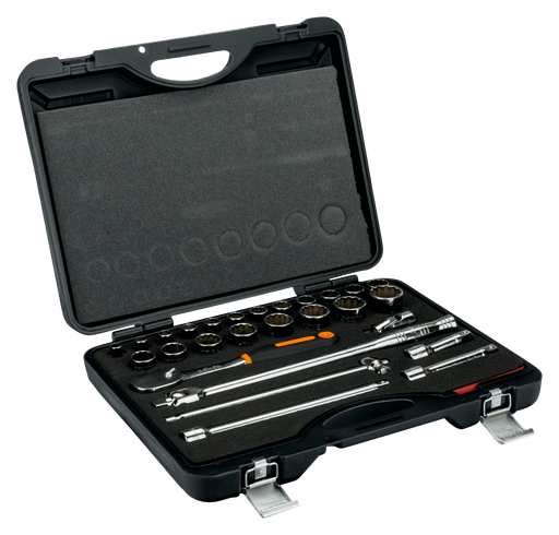 Visão geral do produto: Jogo de chaves de caixa de 1/2", 25 peças; Chaves sextavadas de encaixe, tamanhos métricos; Aço liga de alto desem...