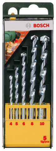 - Conjunto de 5 brocas para alvenaria, Ø 4/5/6/8/10 mm