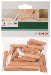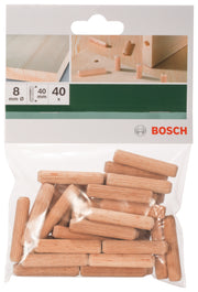 Bucha de madeira Bosch D= 8 mm; L= 40 mm; 40 unidades.