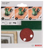 Conjunto de 6 folhas de lixa Bosch para lixadora orbital excêntrica 115 mm