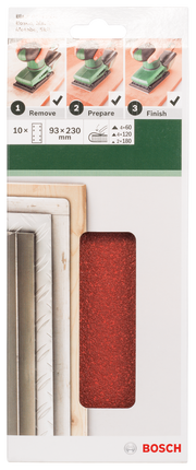 Conjunto Bosch de 10 folhas de lixa para lixadora orbital G = 60, 120, 180