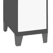 - Mini armário metálico com pés em antracite e portas brancas. Entregue montado, inclui ventilação interior, fechadura cilíndrica com duas chaves (substituíveis, mediante pedido, por qualquer outra fechadura da Simonrack) e porta-etiquetas para informação sobre utilização ou propriedade. Este mini armário pode ser facilmente acoplado a outro armário Simonrack do mesmo tamanho ou maior, da mesma cor ou de cor diferente, adaptando-se perfeitamente às necessidades de espaço do utilizador. Combine-os como preferir. Ideal para colocar debaixo de uma mesa, na casa de banho para guardar toalhas, num vestiário, etc. Fabricado em Espanha.