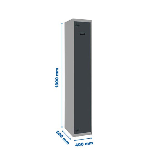 Ver detalhes completosVisão geral do produto: Armário metálico de uma só secção com uma porta na cor antracite e portas interiores brancas. Dimensões: 1800 x 400 x 500...
