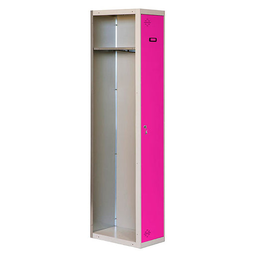Ver detalhes completosVisão geral do produto: Armário metálico de uma só secção com uma porta cinzenta e portas cor-de-rosa. Dimensões: 1800 x 400 x 500 mm. Entregue d...