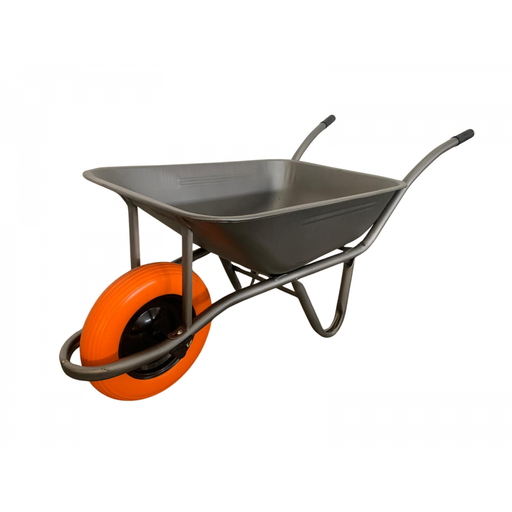 Visão geral do produto: Carrinho de mão Euromodel com roda pneumática, capacidade de 85 litros, proteção para a roda e tabuleiro quadrado. Carr...