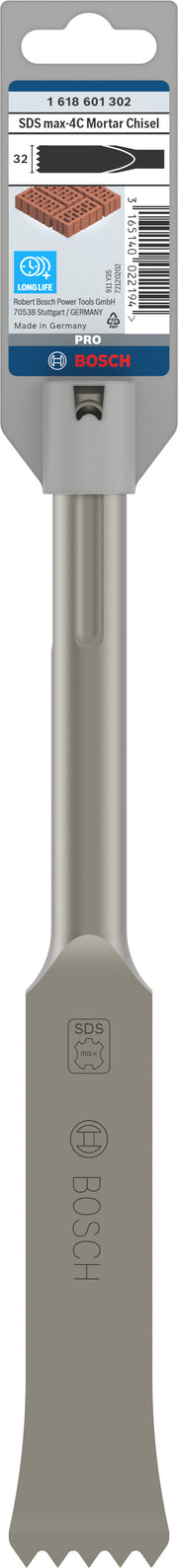 • Concebemos o formão para argamassa PRO SDS max-4C, durável e fácil de manusear, para profissionais de remodelação que necessitam de remover argamassa das juntas de caixilhos de janelas, portas e alvenaria sem danificar os tijolos.