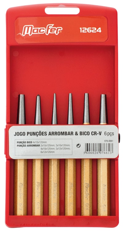 Ver detalhes completosVisão geral do produto: Conjunto de punções para perfuração e bico em Cr-V Modelo/tipo: 12624 EAN: - - Variantes: SKU/Ref. Varian...
