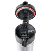 • Este produto pode ser utilizado tanto como lanterna de mão como holofote. Em ambos os modos de funcionamento, a intensidade da luz pode ser ajustada. Além disso, no modo lanterna, o foco do holofote pode ser ajustado, permitindo controlar o diâmetro do feixe de luz. No modo holofote, pode escolher entre luz branca ou luz vermelha intermitente. Possui 3 modos: Alto, Baixo e Estroboscópico. Ademais, graças ao seu conector USB, também pode ser utilizado como bateria externa.