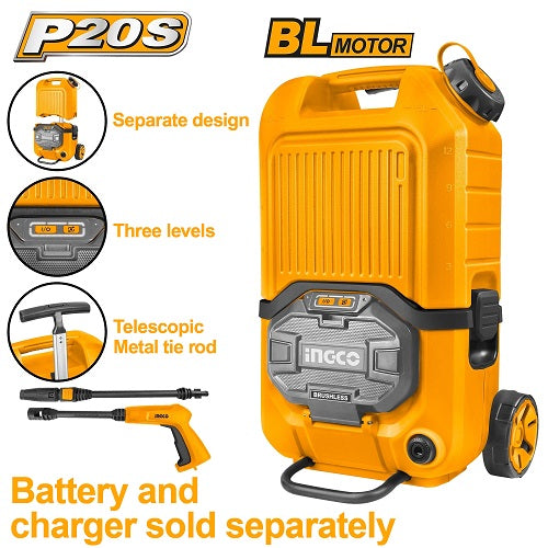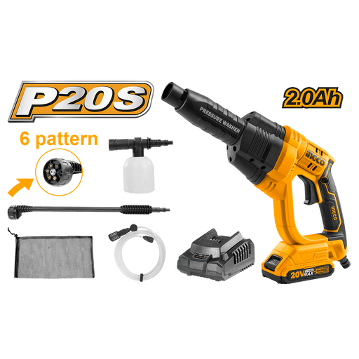 INGCO (CPWLI20082) Lavadora de alta pressão sem fios 20 V Bateria de lítio 2,0 Ah