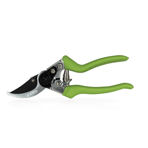 Visão geral do produto: Tesoura de poda tipo bypass de 210 mm com lâmina em aço carbono e corpo em alumínio. Cabo macio. Corte fácil e precis...