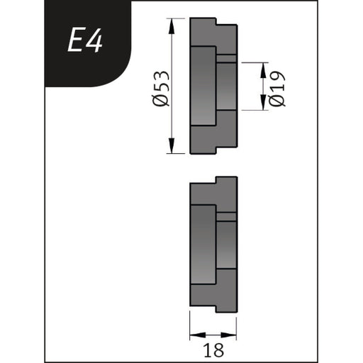 Visão geral do produto: Rolos de dobra Metallkraft (Typ E4, Ø 53 x 19 x 18 mm). Mais informações disponíveis no catálogo (baixe abaixo).
