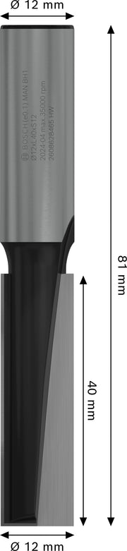Fresa direita Bosch para fresa PRO, duas ranhuras, Ø 12 x L 40, haste de 12 mm
