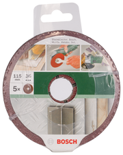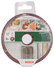 Conjunto Bosch de 5 discos de lixa de fibra para rebarbadora, coríndon D= 115 mm; K= 36; 5 unidades.
