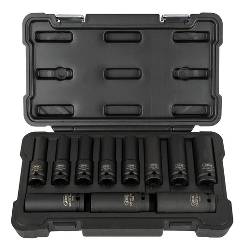 Visão geral do produto: Casquilhos de impacto de 1/2": 27, 30, 32, 34, 36 (78 mm) Pontas de impacto de 12 pontas 1/2": m14, m16, m18 (45mml)