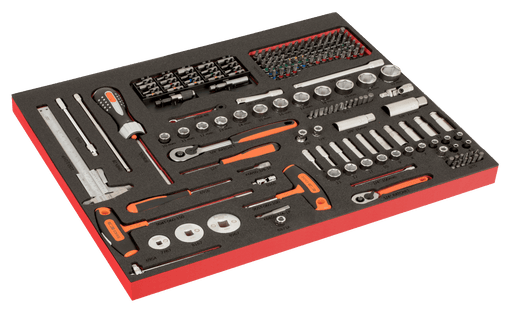 Visão geral do produto: Inclui 104 peças; Calha metálica RAIL-264 de 264 mm; Presilhas metálicas para casquilhos de 1/4", 3/8" e 1/2"; J...