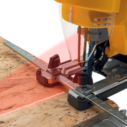 • Para cortes até 45°, o sistema de velocidade ajustável, o encaixe rápido da lâmina, a base em alumínio, a guia laser e a luz LED garantem um corte preciso e eficiente, reforçando a versatilidade e a eficácia desta serra tico-tico.