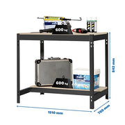 - Bancada de trabalho em metal com acabamento em antracite/madeira, com capacidade de carga de 600 kg. Dimensões (altura x largura x profundidade): 842 x 1510 x 760 mm. Produto espanhol com qualidade europeia. As instruções de montagem estão incluídas ou podem ser consultadas neste link: https://www.Youtube.com/watch?v=GpZpB8AIjro. Dimensões do produto em utilização: 842 x 1510 x 760 mm