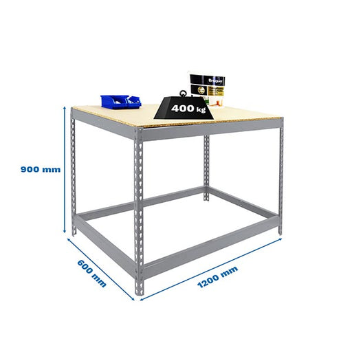 Visão geral do produto: Bancada de trabalho metálica com suporte para uma prateleira, com 900 x 1200 x 900 mm. Cada prateleira suporta até 400 kg...