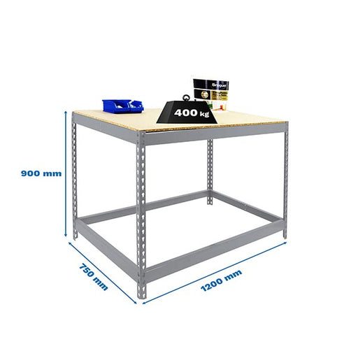 Visão geral do produto: Bancada de trabalho metálica com suporte para uma prateleira, com 900 x 1200 x 750 mm. Cada prateleira suporta até 400 kg...