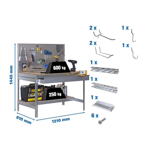 Bancada de trabalho Simonwork BT2 1200 Galv/Madeira + Embalagem de 9 acessórios - (1445x1210x610)